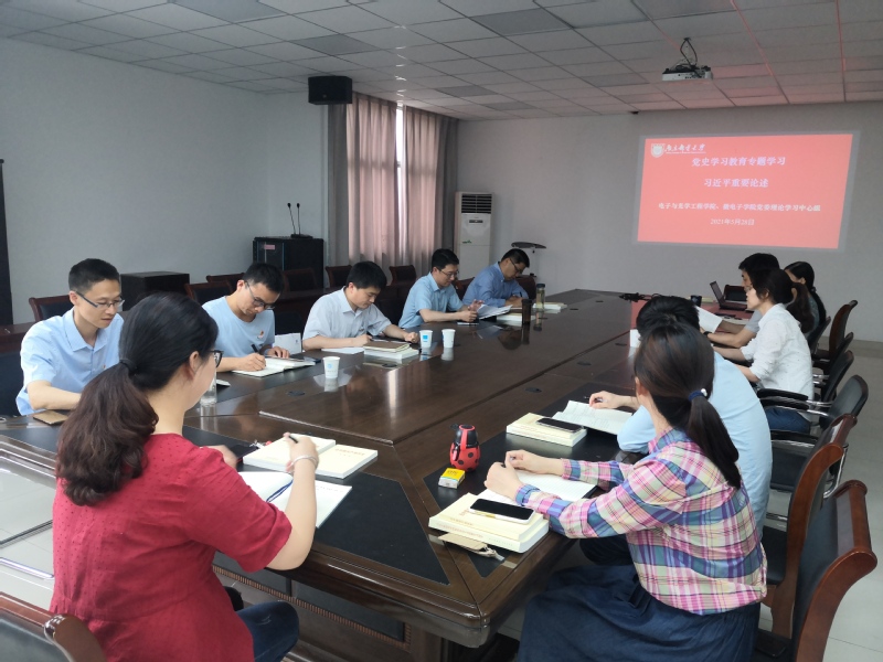 5月28日下午,电子与光学工程学院、微电子学院党委理论学习中心组召开会议,开展习近平重要论述专题党史学习教育。学院党委书记毛建平同志主持会议,校纪委督查组朱皓同志、李心电同志到会督查,学院党委理论学习中心组成员参加学习教育。