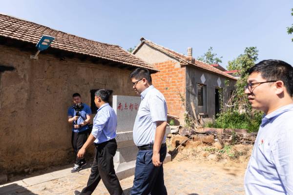 5月27日下午14点,高书记及团队成员来到南邮旧址所在地莒南县坊前镇东甘霖村,受到坊前镇党委通讯员、南京邮电大学红色校史研究会特聘研究员潘纪东及东甘霖村党支部书记王乐学的热情接待。潘纪东委员对学院领导和团队同学的到来表示欢迎,对学校长期以来对东甘霖村的关心与支持表示感谢。随后为邮梦人团队介绍山东战邮历史和南邮红色校史。在此次交流中,团队成员身处战邮故地,对抗战时期战邮员的生活条件之艰苦、通讯工作之艰难有了更深刻的体会。活动结束后,双方在南京邮电大学旧址的石碑前合影留念。