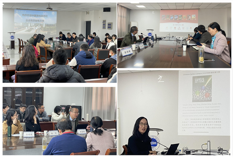 2021年11月25日,中国激光杂志社走进南京邮电大学电子与光学工程学院,中国激光杂志社总编辑王晓峰与Photonics Research期刊责任编辑张然相继做了精彩的学术报告。交流报告会在电光学科楼A327会议室举行,由赵强院长主持,李培丽副院长、李卫副院长、部分教师和研究生参加了报告会。