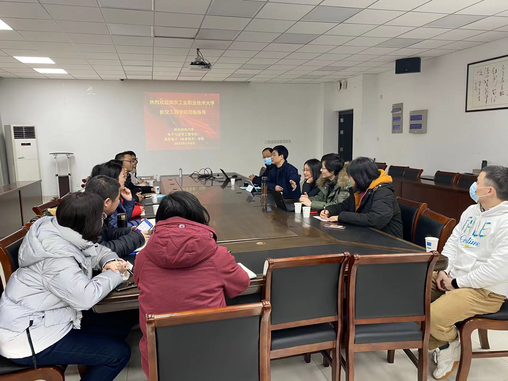 2022年1月5日下午,南京工业职业技术大学航空工程学院在党总支书记傅大梅和院长黄杰的带领下,一行10人来我平台 进行毕业设计工作调研。我平台 副院长程勇,院长助理靳雷生、各系分管实践工作副主任邹建华、夏晓娟、孙晓芸和储鹏参加了调研会。