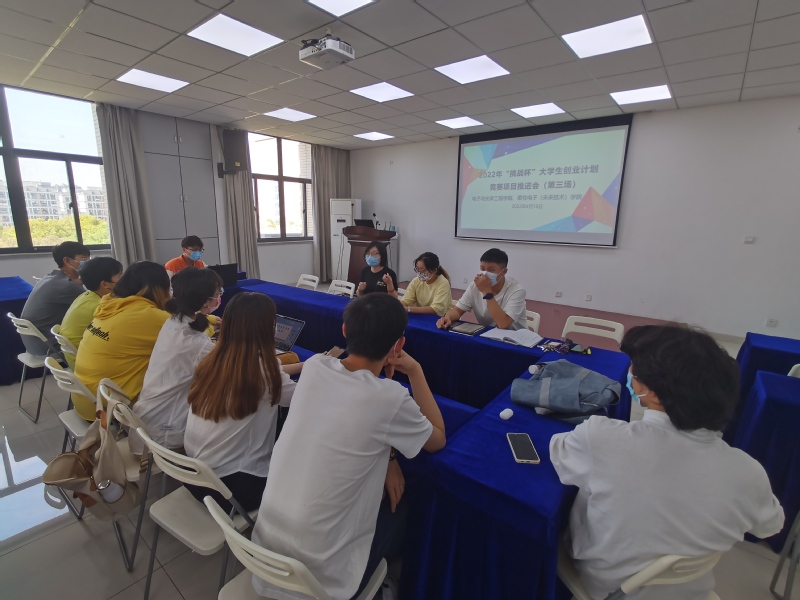 为进一步激发同学们参与学术科技活动的积极性,积累比赛经验,4月10日,太阳城网络赌博平台 在仙林校区电光学科楼B322召开 2022年“挑战杯”大学生创业计划竞赛项目推进会(第三场)。本次会议由院分团委书记肖俊桂老师主持召开,第十二届“挑战杯”中国大学生创业计划竞赛金奖项目团队的核心成员邓洁松、赵妍同学出席会议,分享竞赛经验。