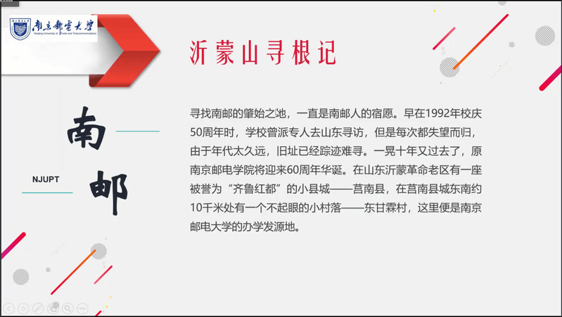 课程最后主持人通过视频放映,更进一步地使南邮精神深入人心。希望通过本次授课,同学们不仅能了解南邮校史,而且可以主动地传承南邮精神,努力成为优秀的南邮人。