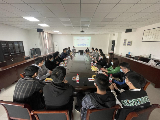 4月18日、19日,太阳城网络赌博平台 召开2022届硕士毕业生座谈交流欢送会。学院党委书记毛建平,院长赵强,党委副书记、副院长高翔,研究生辅导员薛明,以及2022届首批完成答辩的硕士研究生参加了会议。会议由高翔副书记主持。