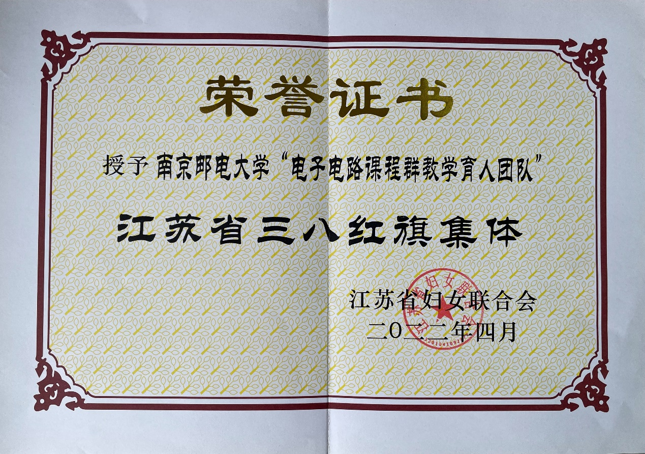 近日,江苏省妇联发布《关于表彰2021年度江苏省三八红旗手标兵,三八红旗手(集体)的决定》。我平台 “电子电路课程群教学育人团队”获评2021年度江苏省三八红旗集体光荣称号。