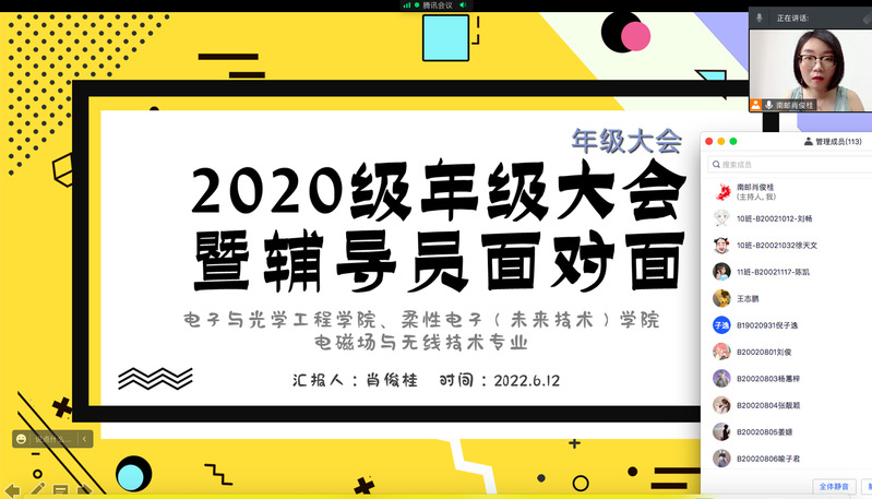 6月12日下午,太阳城网络赌博平台 召开年级大会暨辅导员面对面测评活动,本次会议由辅导员肖俊桂老师主持,2020级电磁场与无线技术专业全体同学参加。