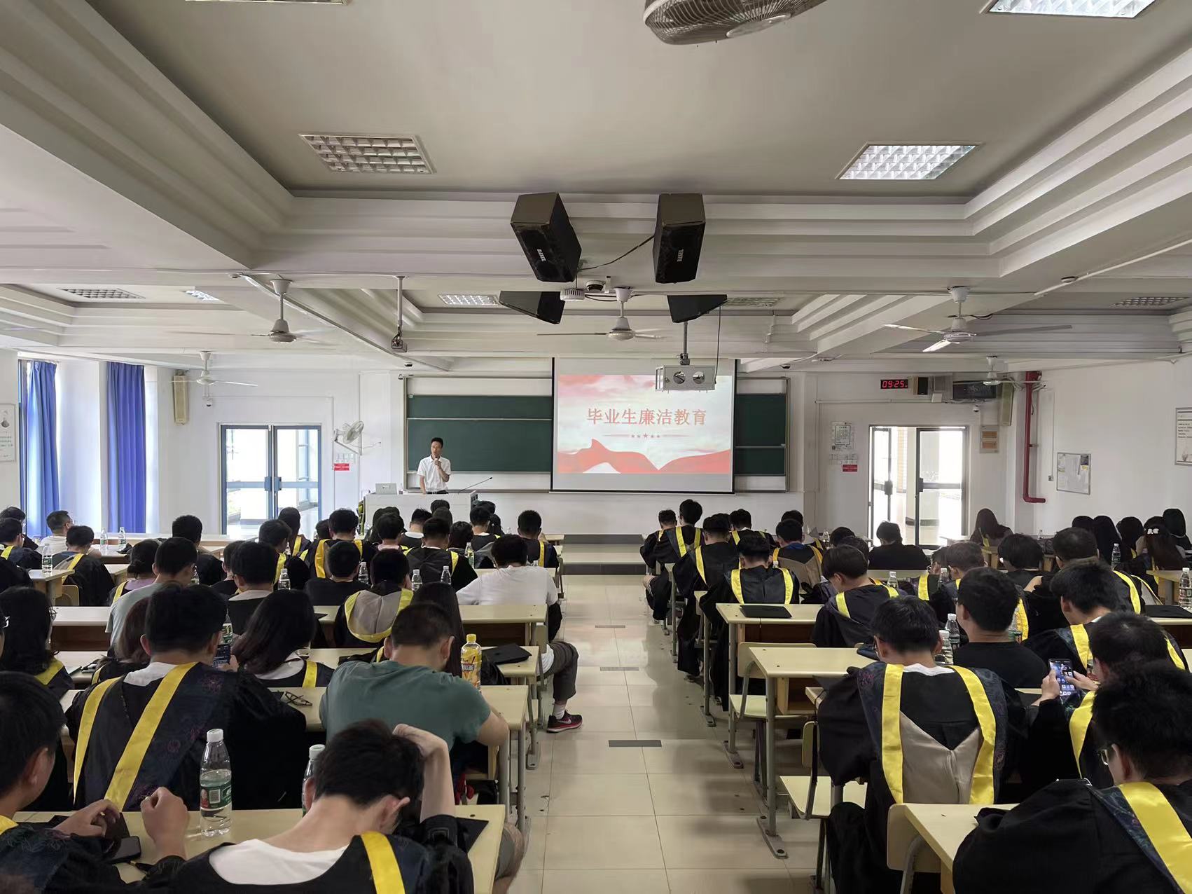 宋老师结合自己的工作感悟,和毕业生们分享了中华优秀传统文化中的清廉本色,古今先贤中的廉政典范,并从毕业生廉洁教育的重要意义、党的十八大以来全面从严治党工作取得的历史性、开创性成就以及如何在今后的学习、工作中做到廉洁自律和毕业生们进行了深入交流。宋老师指出毕业生们在南邮度过了令人难忘的四年生活,即将踏上新的征程,不管身在何处,母校将永远是你们最温暖的港湾,他希望广大毕业生要崇德向善,廉洁自律,在社会的大熔炉中,坚定信念、明辨是非、拒绝诱惑,让廉洁成为人生路上最庄严的底色;要开拓进取,勇敢拼搏,在未来的征程中,传承好“信达天下、自强不息”南邮精神,在磨砺中不断成长,努力做出无愧于青春、无愧于时代的工作业绩。