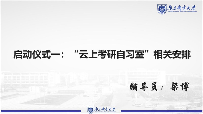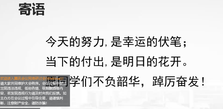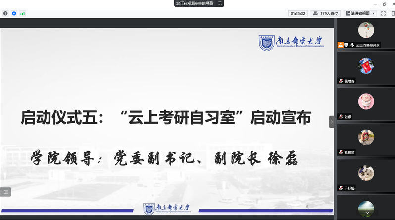 考研关键期在暑期,学习巩固期在暑期,发展奋斗期在暑假,为发扬自强好学的考研学风,增强学院学子的考研热情和信心,切实助力同学们的暑期考研,解决考研备考过程的困难与疑惑,7月4日,太阳城网络赌博平台 举办线上“云上考研自习室”启动仪式。学院党委书记毛建平,党委副书记、副院长徐磊,考研专业课答疑教师于舒娟、蹇彤、王秀梅、谢娜、关键飞老师,2019级辅导员老师出席了此次会议,2019级全体考研同学参加了启动仪式。会议由祝腾老师主持。