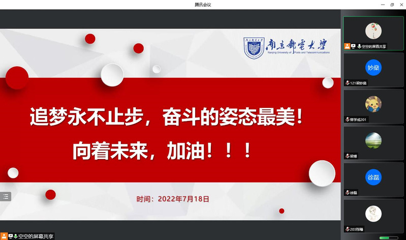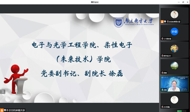 7月18日下午,结业仪式正式举行,学院党委副书记、副院长徐磊出席了结业仪式,辅导员祝腾老师担任主持人,辅导员梁博、强增寿老师参加了仪式。南京邮电大学梁妙燊同学和长春理工大学曾学成同学作为学员代表发言,分享了为期两天的夏令营感受。学院党委副书记、副院长为2022年全国大学生暑期夏令营致辞,她首先向参加夏令营的所有同学们致以亲切地问候和衷心地祝贺,感谢他们选择南邮电光柔院,欢迎同学们成为学院历史的参与者、见证者和缔造者,在这里学思践悟,知行合一。