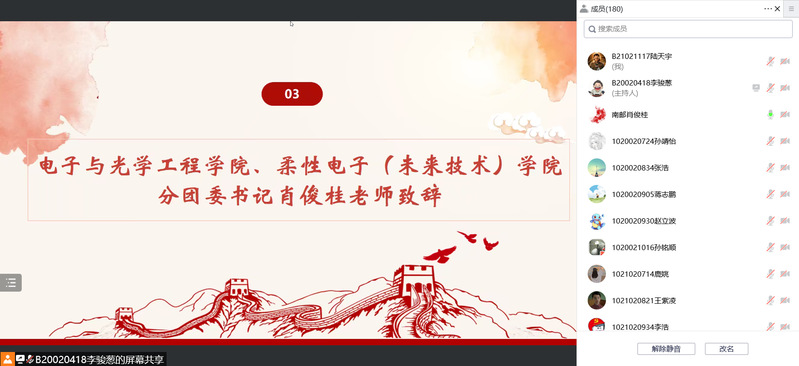 曹如佳同学担任优秀学生代表发言。她总结了本期菁英学校学习历程与成果,鼓励全体学员牢记使命,坚守本心,积极投入到学习实践、社会工作与科技创新中去,完善自我,奉献自我,最终投身于中国特色社会主义伟大实践。