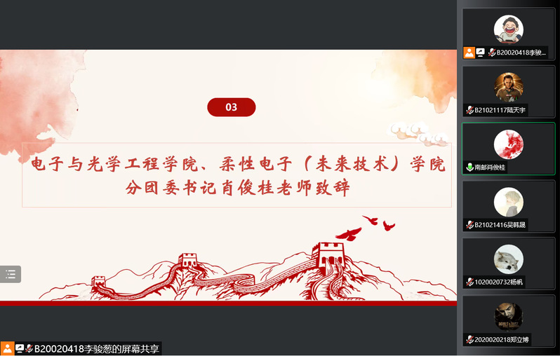 伴随着庄严的国歌声与激昂的共青团团歌,结业典礼拉开了帷幕。会上院分团委书记肖俊桂老师发言。肖老师首先对本次菁英人才学校的顺利结业表示祝贺,接着回顾了本期菁英学校开展的各项活动,总结了菁英学校学员们一年的所知与所行,并对学员们献上勉励与寄语。在讲话的最后,肖老师殷切希望学员们能够坚守本心、信达天下,坚定理想、自强不息,坚持学习、知行合一,做一个品德高尚的青年人,做一个志存高远的南邮人。