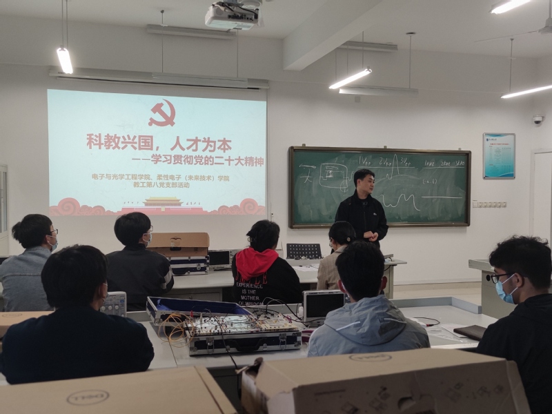 2022年11月16日下午,太阳城网络赌博平台 教工第八党支部结合党的二十大报告中“实施科教兴国战略,强化现代化建设人才支撑”相关内容,在校内开展了“科教兴国,人才为本”学习贯彻党的二十大精神主题党日活动。