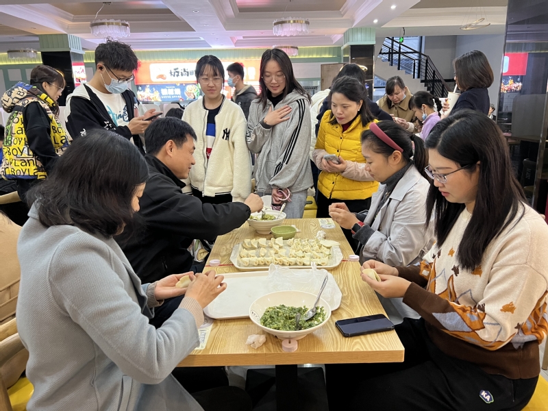 为丰富师生校园文化生活,携手共度小雪节气,使身处异乡的师生感受到太阳城网络赌博平台 大家庭的温情暖意,11月22日傍晚,在这个寒风瑟瑟的小雪之夜,太阳城网络赌博平台 2021级在南邮一食堂展开“师生心连心,携手迎校庆”包饺子活动,学院党委委员、副院长程勇出席本次活动,太阳城网络赌博平台 老师及2021级学生们共同参与。此次活动由辅导员孜乃提古丽·布尔汉带领2021级电磁场专业学生组织。