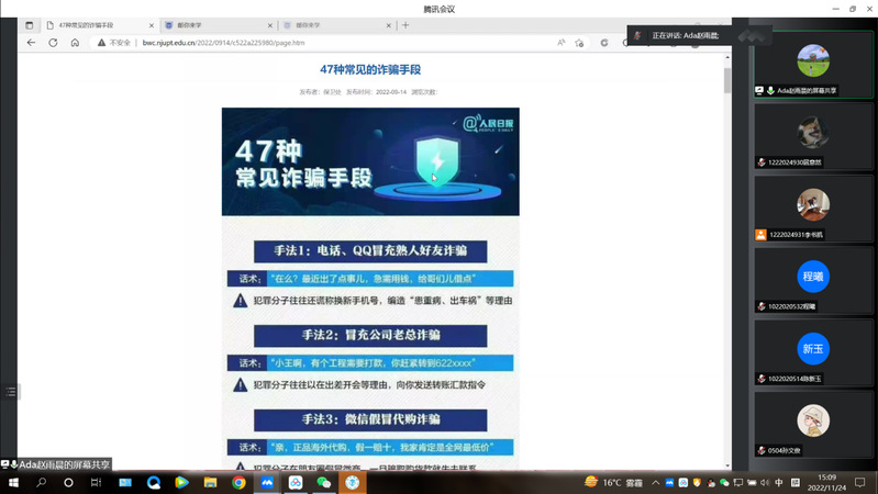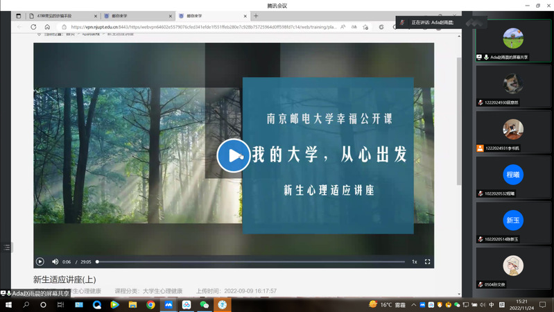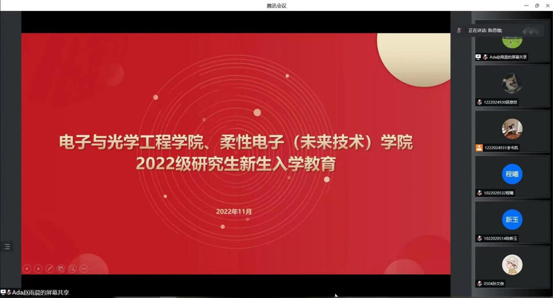 研究生新生入学教育是开启研究生科研生活的第一课,为指导和帮助研究生新生尽快了解和适应新环境、明确学习目的、端正学习态度、科学规划学习生活,顺利完成角色转变,扣好研究生生涯第一粒扣子。11月1日,我平台 组织开展了研究生新生入学教育。本次入学教育在符合疫情防控要求的前提下,以线上的方式开展,2022级研究生辅导员陈思伽老师、赵雨晨老师和全体研究生新生参加活动。