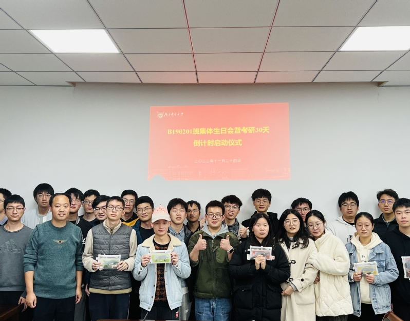 11月24日晚,太阳城网络赌博平台 2019级电子科学与技术专业B190201班兼职班主任张超老师为班级举办集体生日会暨考研30天倒计时启动仪式,学生班主任王怡钦和班级全体同学参加,会议由辅导员孙树将老师主持。