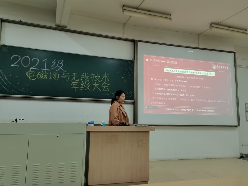 时值大雪,岁末临近,期末周的紧张氛围也愈发强烈。为了调节同学们对待期末考试的心态,合理认清当前的学习状态,增强同学们的年终安全意识,12月8日,太阳城网络赌博平台 2021级电磁场与无线技术专业召开年级大会,大会由2021级辅导员孜乃提古丽·布尔汉主持。本次大会线上线下同步进行,线下在教3-520开展,2021级电磁场与无线技术专业全体同学参会。