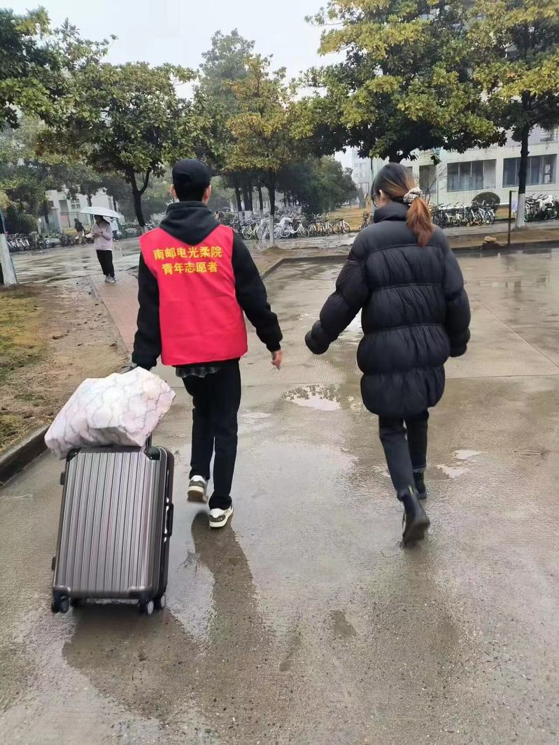 新春伊始,万象更新。2月11日-12日,我校迎来2023年春季学期返校学生,正值春雨绵绵的季节,为更好保障同学们顺利入校,减轻同学们的行李转运负担,太阳城网络赌博平台 分团委牵头,以电光柔学院青协为抓手,辅导员责任制开展了“喜迎开学季,红马甲先行”志愿服务活动。本次活动分设门口和宿舍区接应岗负责帮助引导同学们乘坐学校接驳车。此外,以班级为单位,志愿队伍建在班上,更精准对口帮助同学们陆续入校。