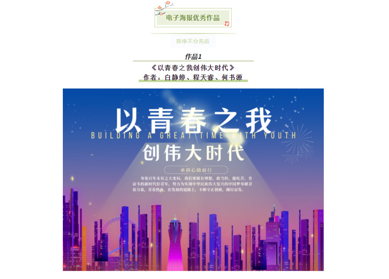 活动过程中,我平台 各团支部、学生组织(社团)号召广大同学积极参与,将本次劳动教育实践活动作为团支部、学生组织(社团)展文化、树形象、立新风的重要抓手,作为同学们学习新技能、担当新作为、贡献新智慧的广阔舞台。经过前期宣传,活动共征集到来自学生组织(社团)、各团支部的优秀投稿作品简历28份、视频30份、海报58份、PPT模板47份。学院组织了作品遴选和网络展示,从投稿作品里择优推荐优秀作品参加我校第四届新媒体设计大赛。