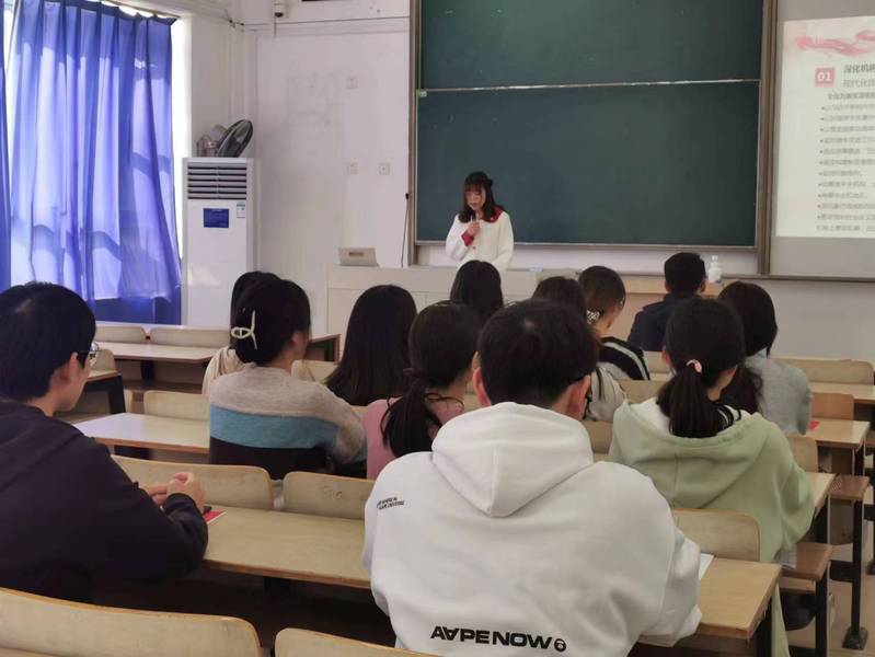 随后,张泰来同志作为学生党员代表作了发言。他谈了自己对于党的二十届二中全会精神的学习感悟,表达了作为一名即将毕业的大四学生对于老师同学的不舍之情。大学期间的党史、党规学习使他对于党的宗旨有了更加深刻的认识,希望未来做个有理想、有本领、有担当的青年人。