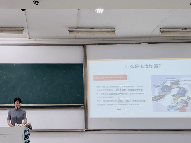 筑牢思想防线,防范电信诈骗。此次班会紧紧围绕电信网络诈骗认知、电诈发案形势特点、常见电诈类型、如何防范网络诈骗、被骗后的补救措施等五个方面进行讲解,并重点介绍了电信网络诈骗的方式和防范电信网络诈骗的方法。李老师将日常生活中常见的刷单返利、注销网贷、买卖游戏装备、冒充电商物流客服、好友熟人、“公检法”诈骗等电信诈骗形式一一剖析,分别举例介绍,向同学们生动形象地说明了电信诈骗的具体类型,为同学们敲响了预防电信网络诈骗的警钟。李老师还着重强调了防范电信网络诈骗的方法,提倡学生关注国家反诈中心APP,牢记防诈专线“96110”等。除此之外,还教育引导同学们做到“给钱的不要,要钱的不给”,做到“陌生来电不轻信,未知链接不点击,个人信息不透露,转账汇款多核实”,时刻防范电信诈骗。