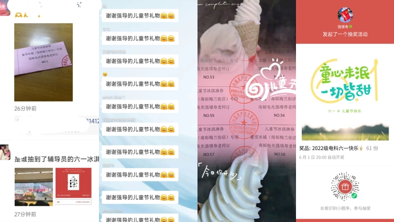会议伊始,辅导员强增寿老师贴心地为同学们准备了“六一”惊喜,以抽奖的方式为同学们准备了61份与众不同的六一礼物。在抽奖结果公布前,强增寿老师与同学们共同观看了清华2023年招生宣传片《第1001天》,与同学们共同感受青春奋斗的姿态和大学生活的价值追求,短片结束后,强老师用数字的例子勉励同学们要努力奋斗,珍惜时光,他讲到把1比作每一天,每天多做一点点为1.01,每天少做一点点为0.99,再进行365次方,结果是万倍的差异。