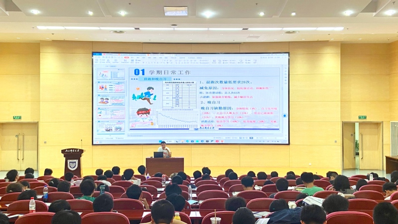 随后,强增寿老师从学期日常工作的办理,学期成长发展,学期案例分享,诚信考试,近期工作通知以及面对面测评这6个方面进行了学期总结。同时,强增寿老师强调了早操、晨读、晚自习的重要性,介绍了考研、保研的政策和2019级毕业生们的去向分析,更加清晰了同学们的方向,提醒同学们要及时地做好规划,提高对自己的要求。长期理想和短期愿望同样重要,愿望的实现感受到的是快乐,长期理想体会到的是欣喜。会议最后,强增寿老师祝愿全体同学们本学期取得一个良好的成绩,预祝同学们过一个美好的暑假。