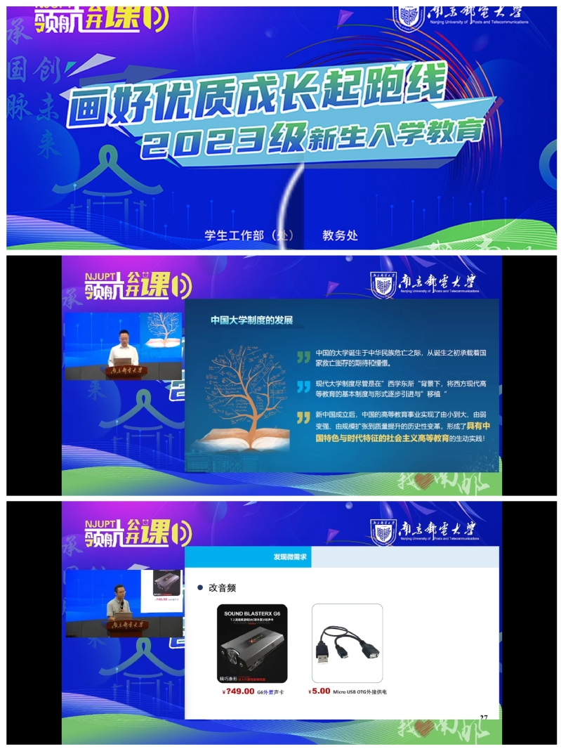 根据教育部思想政治工作司2023年工作要点,坚持以习近平新时代中国特色社会主义思想为指导,紧紧围绕深入学习贯彻党的二十大精神这条主线,以全面实施“时代新人铸魂工程”为牵引,结合学发〔2023〕4号《2023级新生入学教育工作指导意见》要求,以上好“开学第一课”为重点,2023年8月19日-20日,南京邮电大学组织开展“领航公开课”,太阳城网络赌博平台 2023级新生全体成员准时收看线上直播。