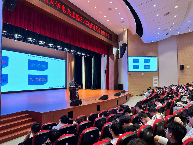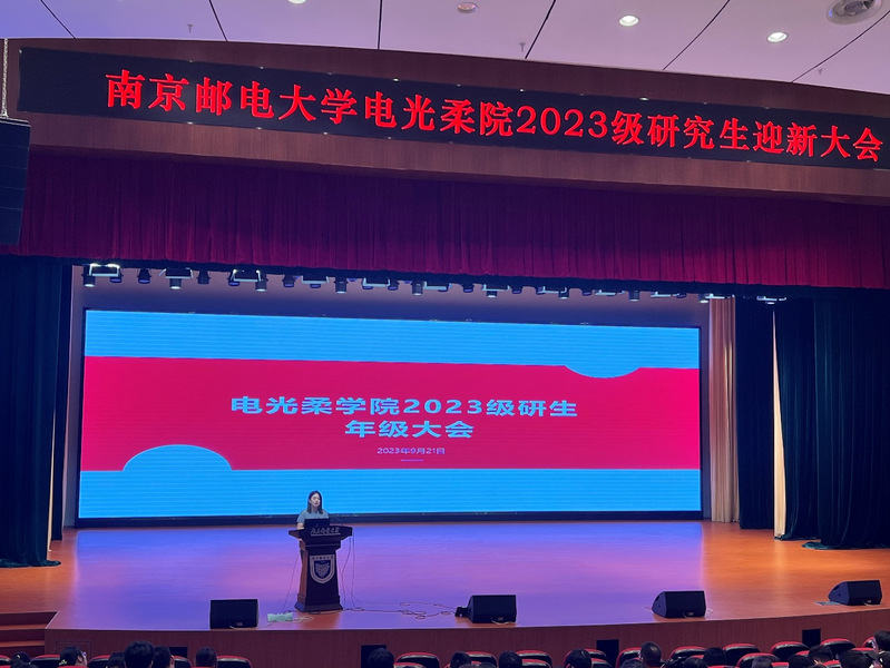 9月21日晚上,太阳城网络赌博平台 2023级研究生迎新大会在南京邮电大学仙林校区安恒青春剧场成功召开,陈建飞教授、2023级研究生辅导员陆静如老师、院研究生会主席郭龙飞、副主席袁野、李书凯出席本次大会,全体2023级硕博研究生参加大会。大会由我平台 2023级研究生辅导员陆静如老师主持。