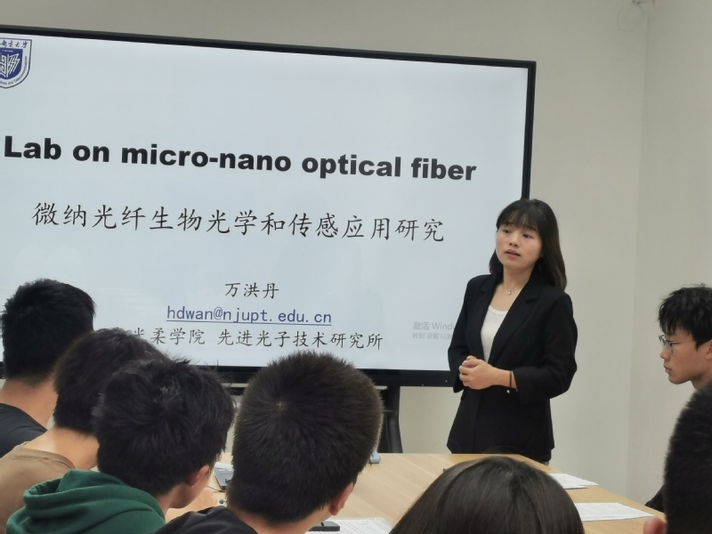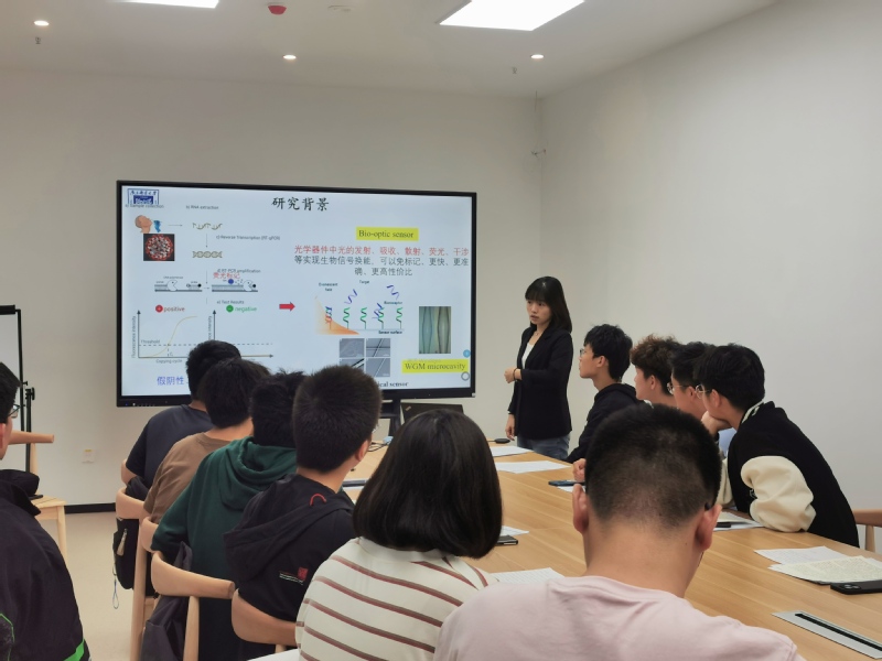 万洪丹老师的讲座主题是“微纳光纤生物光学和传感应用研究”。万老师从与生活相关的科研案例讲起,深入浅出地给同学们介绍了医疗,能源、信息和军事等方面涉及的光电知识背景和前沿信息。她还在学习目标、升学情况、就业前景三个方面给同学指引了方向,期望同学们能够打牢基础、努力学习,快乐科研,在光电领域发光发热。