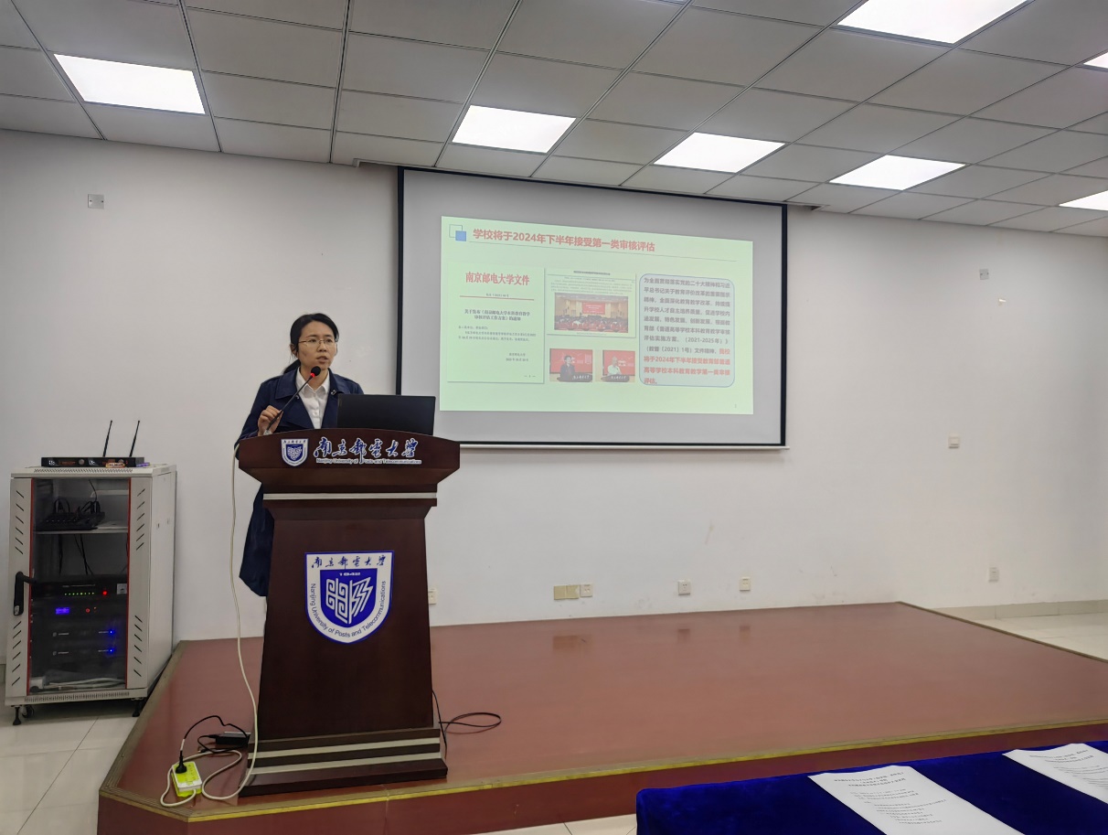 随后,刘蕾蕾副院长介绍了《南京邮电大学本科教育教学审核评估工作方案本工作方案》的主要内容,重点强调了学院的工作内容和进度安排,并对李志义专家的审核评估PPT报告进行详细解读。全体教师要深刻理解审核评估的核心要素和内涵深度,准确把握学校发展战略,应对好新一轮审核评估工作的新变化、新要求;要强化规矩意识,将“自觉、自省、自律、自查、自纠”质量保障机制落实到教育教学各环节;要充分调动一线教师的积极性,做好课程试卷、毕业设计、实习过程记录等教学档案管理。