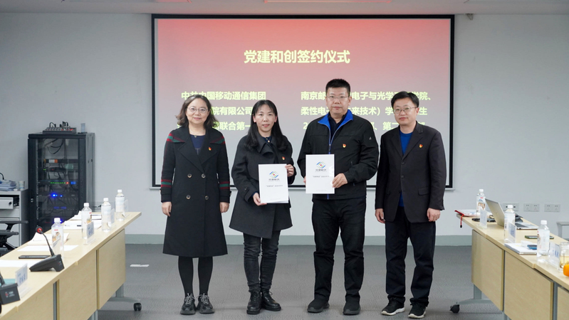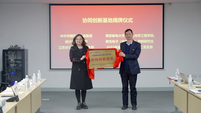 为深入学习贯彻党的二十大精神,坚持以习近平新时代中国特色社会主义思想为指导,落实新时代党的建设总要求,充分发挥基层党支部的主体作用,激发党员活力,12月7日下午,南京邮电大学电子与光学工程学院、柔性电子(未来技术)学院与中移设计院江苏分院联合第一支部协同创新基地揭牌暨党建共建签约仪式在中移设计院江苏分院一楼会议室举行。学院党委书记黄丽亚、党委副书记、副院长徐磊、中移设计院江苏分院党委书记、院长王翔、党委委员、副院长曾昭平、学院邹辉副教授出席揭牌仪式,学院2022级研究生辅导员、分院联合第一支部组织兼纪检委员、宣传兼青工委员、联合第一支部党员代表、部分学生党员代表参加会议。会议由中移设计院江苏分院党委委员、联合第一支部书记李凤武主持。