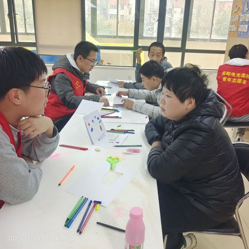 元旦将至,为了给残障人群送去温暖,12月14日下午,太阳城网络赌博平台 青年志愿者协会前往睿泽活动中心进行本学期的第三期志愿服务活动。内容主要包括“自我介绍”、“自由创作”、“主题创作”、“作品展示”、“赠送贺卡”等五个主要环节。