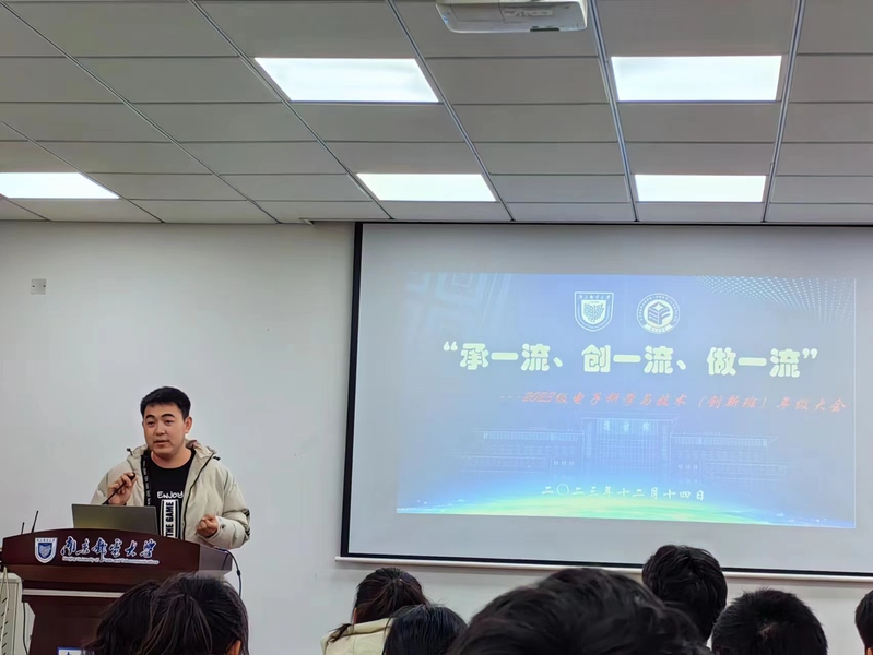 12月14日下午,南京邮电大学2023级电子科学与技术(创新班)在电光楼B322召开了“承一流,创一流,做一流”主题班会暨年级大会。会议由辅导员强增寿老师主持,学院党委副书记、副院长徐磊,班主任王龙禄副教授参加了本次会议,会议还邀请了霍程阳、李梦竹、李静文、殷葳楠、孙宁五位优秀学长学姐进行学习和生涯经验分享。