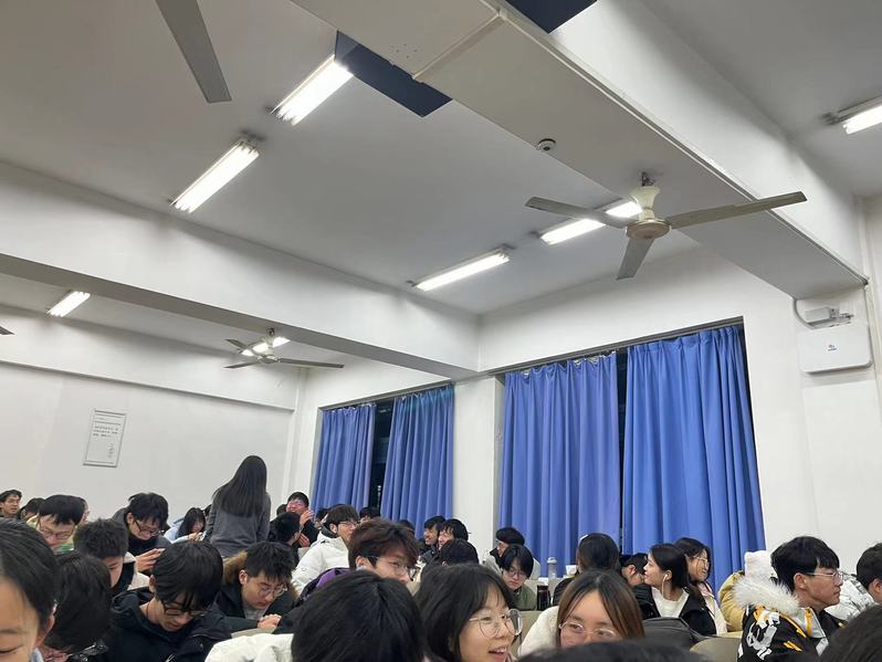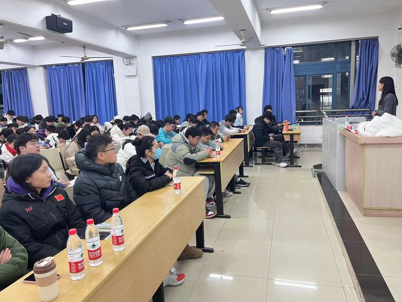 年级大会包括学期日常工作管理、学期成长发展、学期案例分享、诚信考试教育、其他通知要求、辅导员/班主任面对面测评等方面。会议伊始,李老师和同学们进行互动交流,展示了同学们的生活照片、实验室照片、团建照片等,和同学们一起回忆2023年的快乐瞬间,活跃了年级大会的氛围。之后年级大会正式开始,在日常工作管理方面,李老师展示了本学期违章电器使用情况,对学生们进行教育提醒,并强调了晨跑合格的重要性。在学期成长发展方面,李老师向同学们总结了目前的党团建设和班级建设,对优秀班级以及学生进行表扬,同时也对有学业预警的学生给予提醒以及帮助。在学期案例分享方面,李老师带领同学们分析了各班上学年的平均绩点、六级通过率等,分析了不同绩点所对应的企业、薪资、以及考研的初试分数以及录取比例,督促学生们认真学习,珍惜韶华。在诚信考试教育方面,李老师以有趣的举例视频展开,视频里搞笑又显眼的作弊行为让同学们印象深刻。最后,李老师还邀请了各班的班主任老师,和同学们一起进行面对面测评,测评结束后各班进行了合影留念。