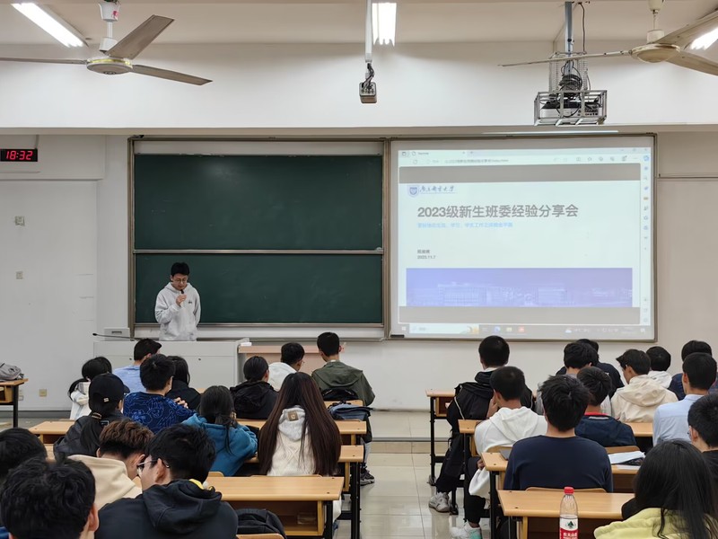 这次活动邀请到了两位2020级优秀班委代表,殷葳楠学长和潘政学姐。首先,殷葳楠学长强调了适应新环境的重要性,他提醒新生们可以通过加入兴趣社团来结交新朋友,尽快融入大学生活。殷学长还鼓励新生们要勇于尝试新事物,不要害怕失败,同时班委应加强自身建设,应当在思想上、学习生活中真正起到模范带头作用。接着,潘政学姐详细介绍了班级班委分工和主要职责,就如何进行日常活动的组织安排、提高班级凝聚力等提出了可借鉴的建设性意见,各位班委需要凝心聚力为班级发展贡献力量。学长学姐还提醒大家要认真做好大学四年的学业规划。最后,新生班委们宣读班委誓言,极大地鼓舞了整体气势。