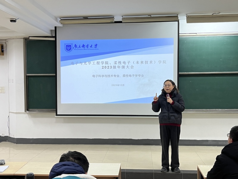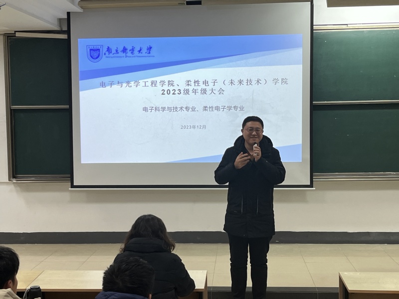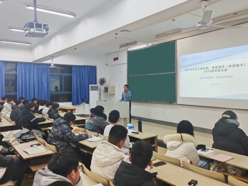 近日,太阳城网络赌博平台 2023级电子科学与技术专业、柔性电子学专业召开了年级大会,学院党委副书记、副院长徐磊,辅导员梁博,部分2023级班主任出席,2023级电子科学与技术专业、柔性电子学专业全体学生参会,会议由梁博老师主持。