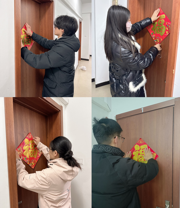 岁末将至,敬颂冬绥。迎新春、贴福字是中华民族的传统文化,辅导员老师们提前准备了精美的福字,为每个宿舍的门上贴上了一份寓意吉祥的祝福。这些福字不仅代表着新的一年将迎来好运,更寄托了对同学们未来的美好期望。关爱学子,情暖心田。小小的福字送上的新春祝福如一缕温暖的阳光,拉近了师生间的距离,照亮了同学们寒假返乡的脚步。愿同学们在新的一年里万事随想,所爱如山。