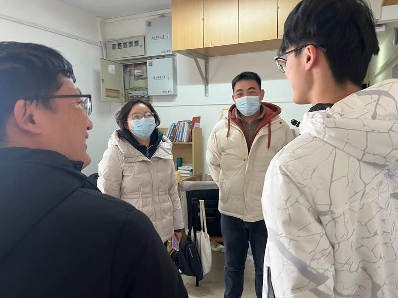春风送暖,传递温情。新学期伊始,为加强校园的安全稳定、维护良好校园秩序,了解学生宿舍问题及返校情况,鼓励同学们以积极的状态迎接新学期,2月25日,太阳城网络赌博平台 学生线开展宿舍走访,学院党委副书记、副院长徐磊,全体本科及研究生辅导员共同前往宿舍。