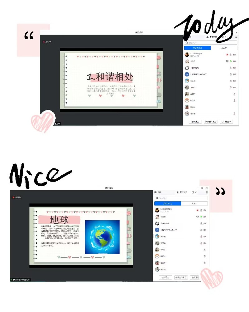 本次云支教活动包括“云阅读”、“云课堂”和“云交流”三大活动项目,通过PPT讲授、基本知识讲解、视频播放浏览、线上互动交流等多形式相结合,营造良好课堂氛围,开展趣味课堂,使同学们能够学习到生态文明教育相应知识。以下为活动部分成果展示:
