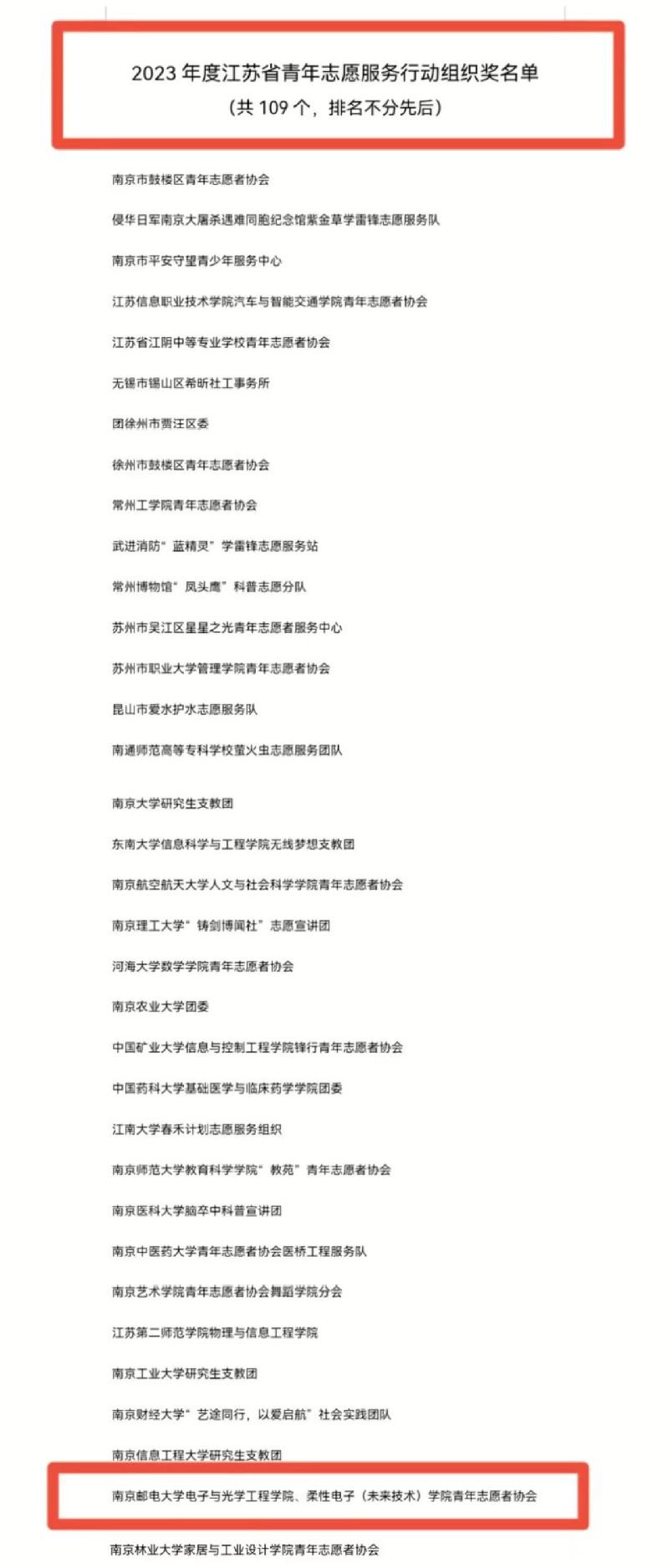 其中,太阳城网络赌博平台 青年志愿者协会荣获2023年度江苏省“志愿服务行动组织奖”。
