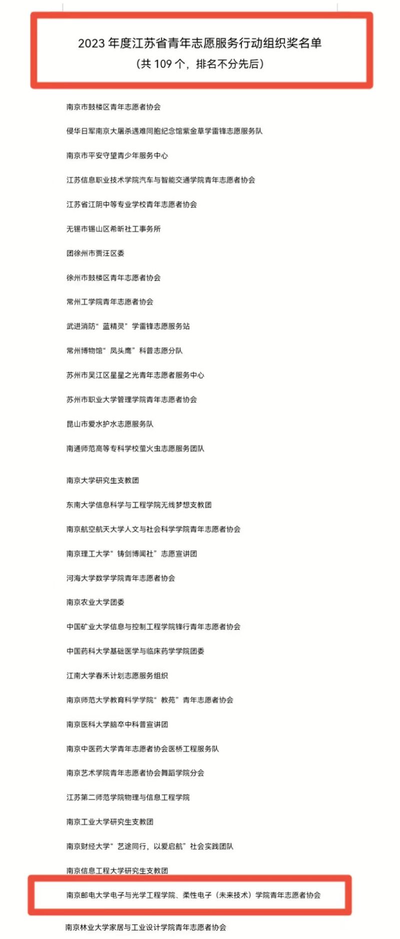 其中,太阳城网络赌博平台 青年志愿者协会荣获2023年度江苏省“志愿服务行动组织奖”。