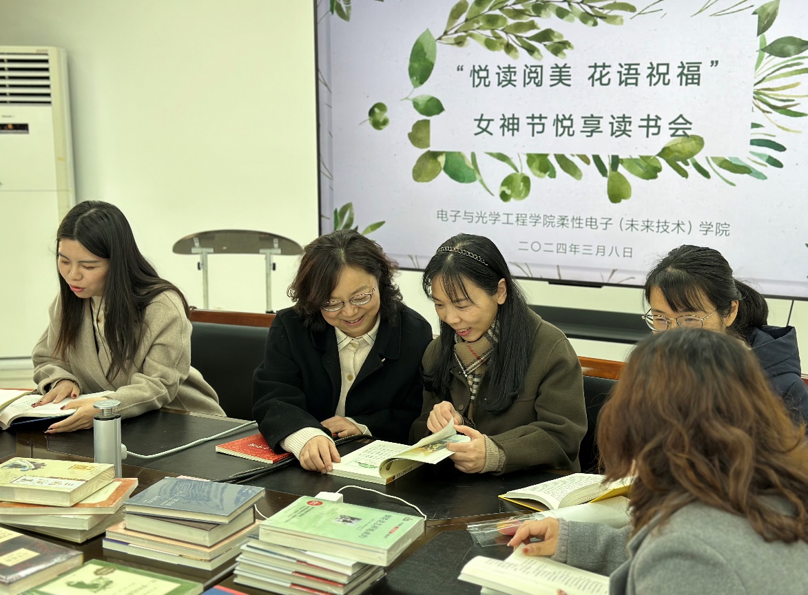 同时,学院工会于节日当天举办了“女神节悦享读书会”。院党委书记黄丽亚、党委副书记、工会主席徐磊及女教职员工代表参加活动。