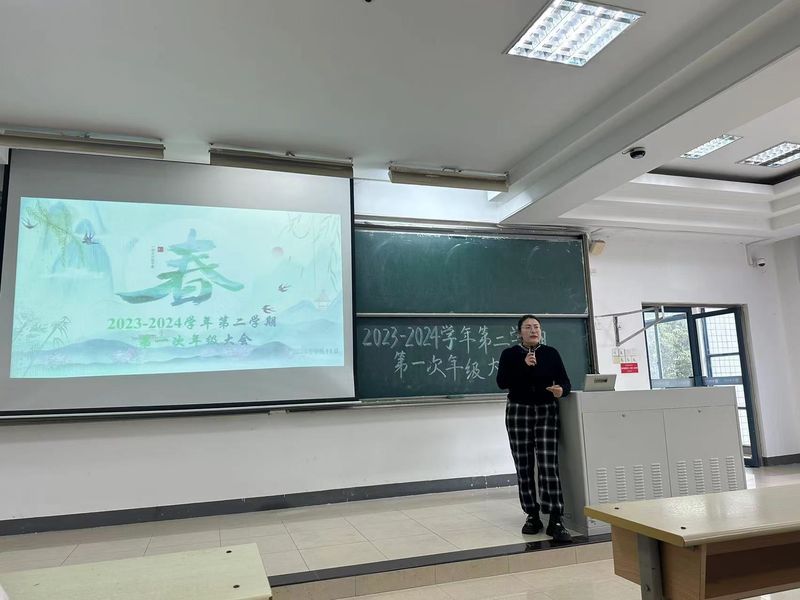 本次年级会议由学风建设、安全教育、日常管理三个部分组成。会议伊始,根据大一培养方案和课程安排,各班学委讲述了对选课注意事项,个别课程难点及课程结课要求,古丽老师着重强调了课程考勤、考试规范等问题,建立良好学习习惯,提高课程学习效率,形成良好的学风班风。其次,古丽老师向大家普及校园安全知识,指出在点滴小事中存在的各种潜在风险。数不胜数的案例,花样百出的诈骗手段,防不胜防的信息泄露,用这些发生在身边的真实例子为同学们敲响了警钟,在日常生活中也要保持充足的警惕心。最后,古丽老师鼓励同学们及时倾诉,释放压力,并介绍了学校心理咨询服务。还提醒同学们制定自己大学学业规划,包括四六级考试的准备,科研竞赛以及社会实践等。