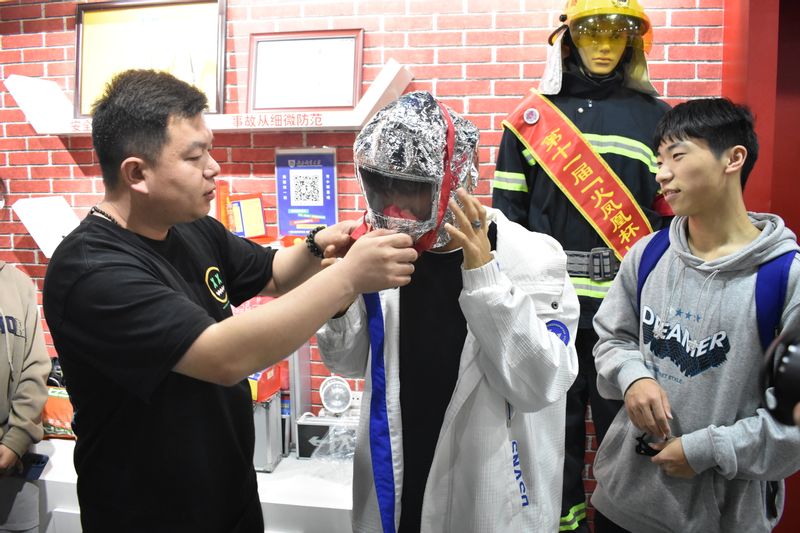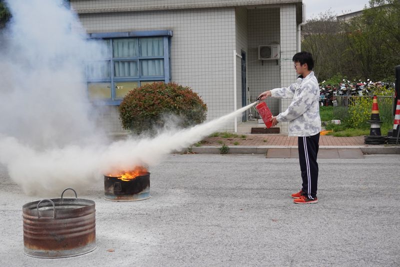 培训课后,举行了消防演练。保卫处薛宇飞老师详细讲解了消防演练注意事项,副处长吴学政宣布消防演练正式开始。伴随警铃响起,全体师生在应急指挥组的指挥下,用湿毛巾捂住口鼻,弓着身子,沿着指定路线,在浓烟下快速逃离;安全引导员在各个楼梯口进行引导,参演师生有序地撤离学科楼到达安全场地集合。在应急救援队清点人员后,最终确认全部安全疏散,演练圆满成功。疏散演练结束后,参与师生分为两组,一组前往学校西门广场进行灭火器使用演练,另一组前往学校安全教育与应急中心体验馆体验。