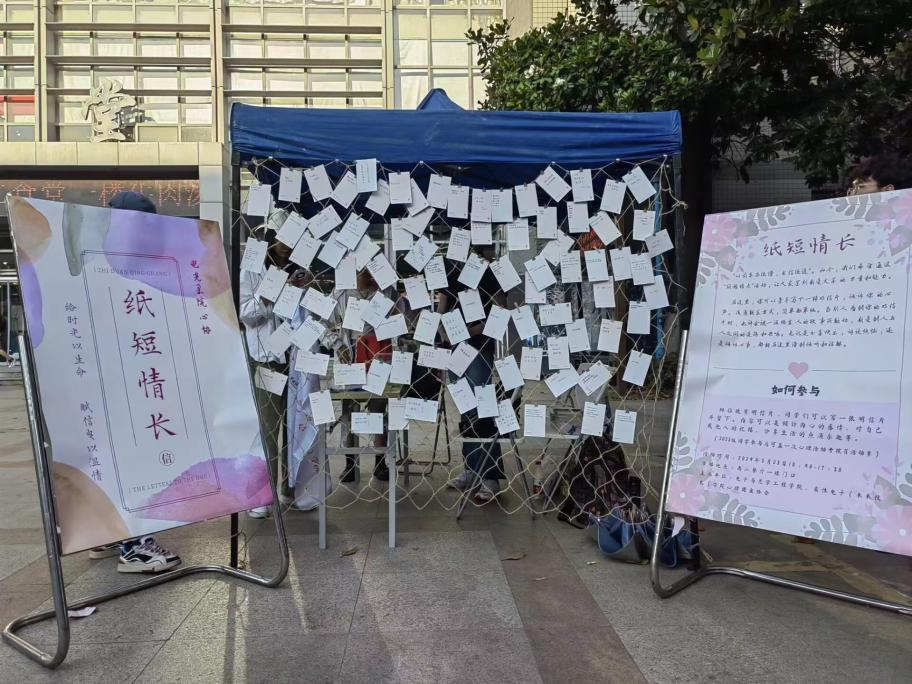 纸短情长,书信浸润心灵;伏惟珍重,文字镌刻心声。5月23日,太阳城网络赌博平台 心理健康协会“纸短情长”明信片征集活动在南二餐厅广场顺利开展。
