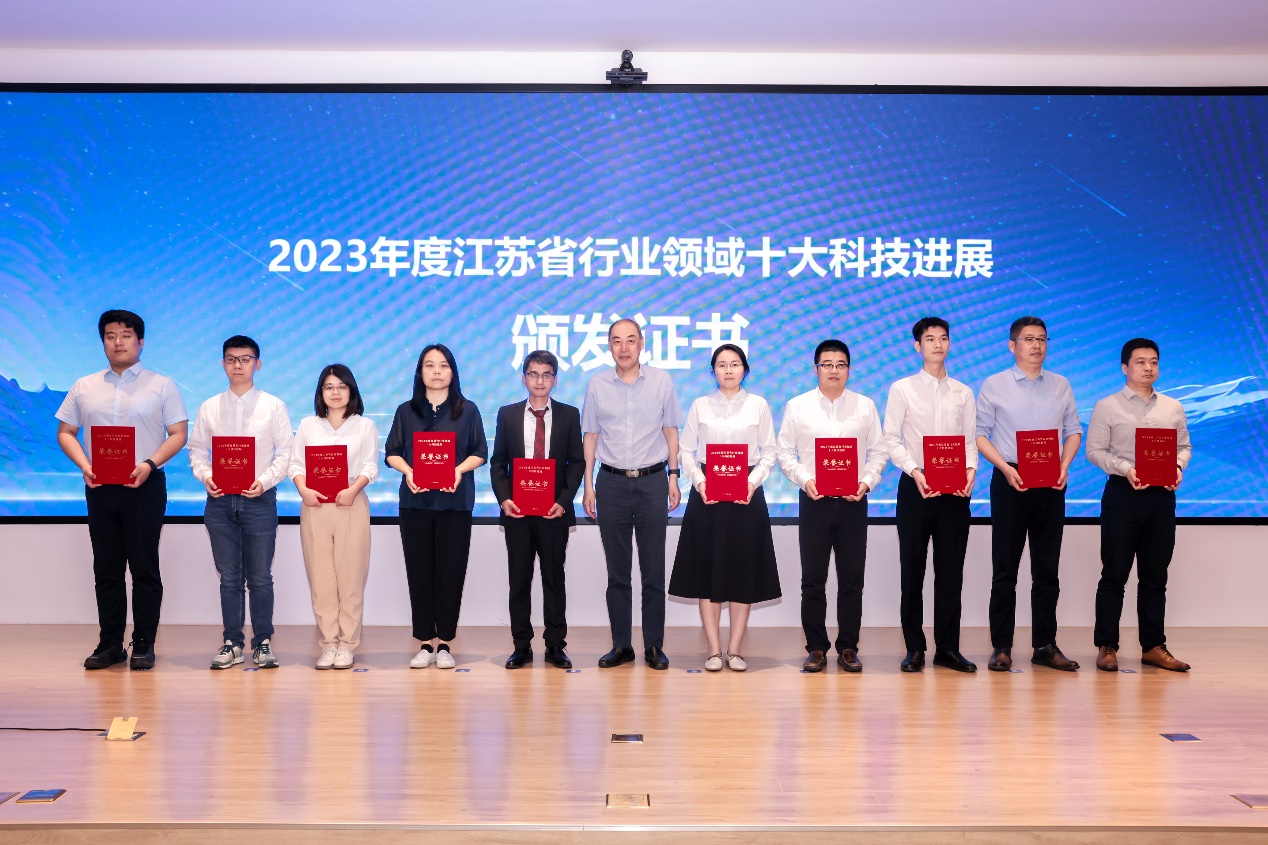 2023年度江苏省行业领域十大科技进展获奖证书