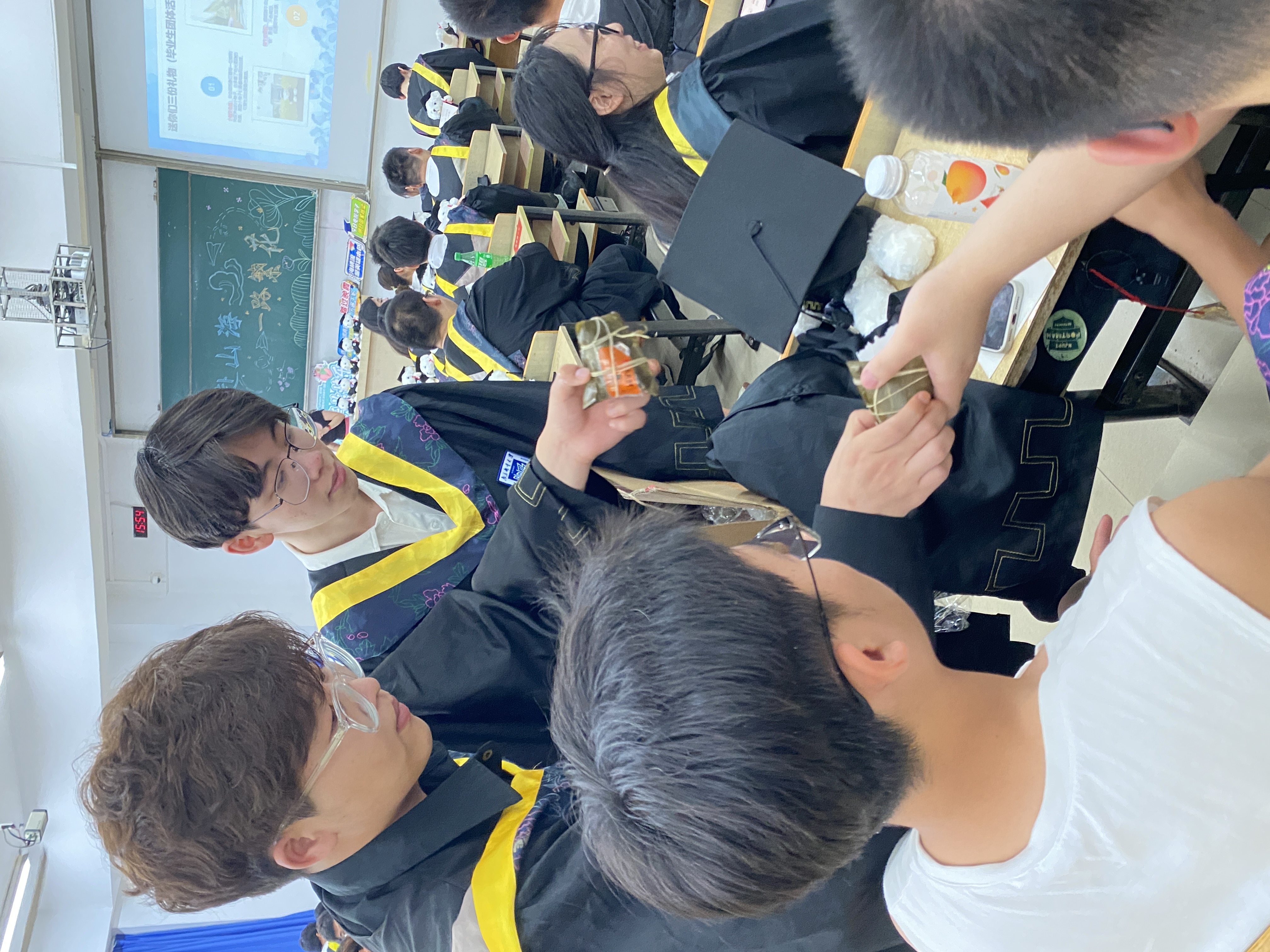 第二份礼物,端午安康粽。“锦绣端午毕业季,万水山‘粽’是情,一颗粽子代表了不舍离别,见证着‘粽’见情长”肖老师深情地讲述着粽子的寓意,并请班长们把粽子分发给在场的每位同学现场品尝,将思念与祝福永存心中。