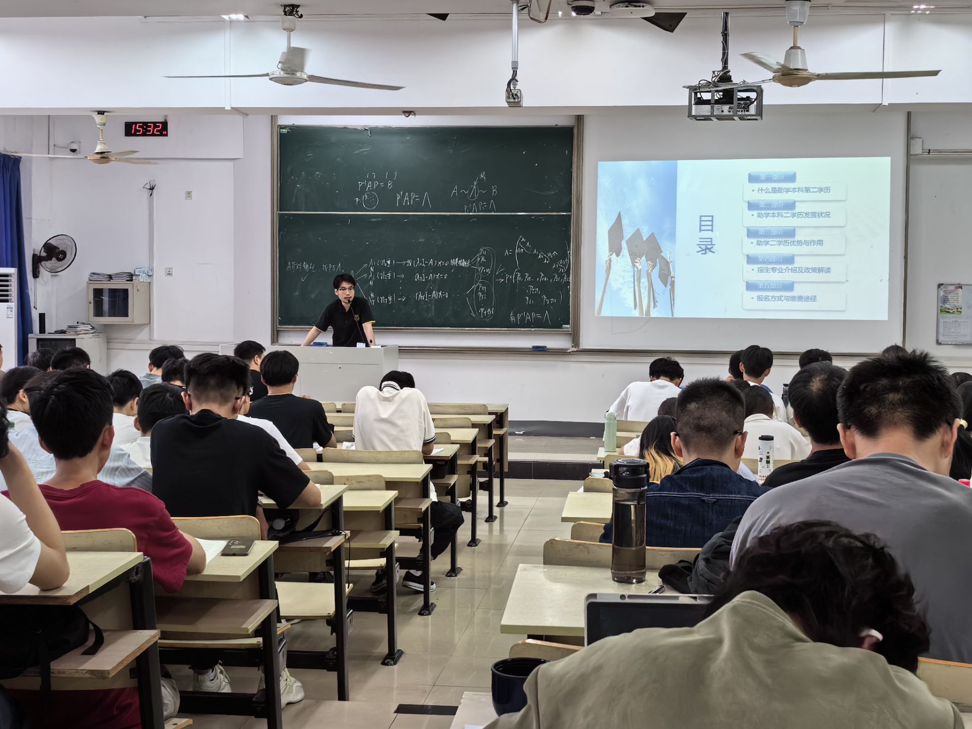 为了聚焦国家战略发展需求,提升大学生跨学科综合素养,助力大学生高质量升学和就业,更好地满足经济和社会发展对人才的多样化需求。5月,太阳城网络赌博平台 23级光电专业开展二学历招生宣讲会。本次宣讲会邀请了继续教育学院张宸皓老师主讲,23级全体光电同学参加。