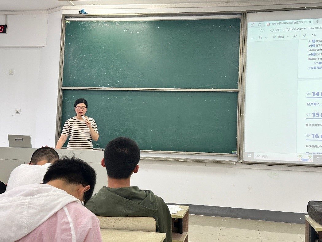祝腾老师首先从辅导员日常工作对本学期工作进行总结。祝老师还强调了本科教育教学审核评估的重要性,提醒大家在日常生活中注重构建良好的学习氛围。《劳动教育》是学校一直以来重视的课程。祝老师提醒大家通过劳动教育,注重树立正确的劳动观念、具有必备的劳动能力、培育积极的劳动精神、养成良好的劳动习惯和品质。本学期,学院开展了系列劳动教育相关活动,文化走读、篆刻橡皮章、苑区劳动工坊等,旨在培养学生实践能力和创新精神。接着,祝老师还结合本届学院考研就业情况,给大家详细分析了保研相关政策、考研备考流程、留学相关信息、就业实习需提前准备的工作等,助力大家提前了解升学相关信息,树立正确的就业择业观。