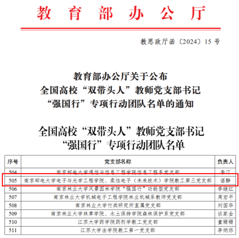 近日,根据《教育部办公厅关于开展高校“双带头人”教师党支部书记“强国行”专项行动的通知》(教思政厅函〔202411号)要求,经学院组织申报、校党委审核把关、省教育厅推荐、专项行动办公室备案审核,我平台 教工第三党支部成功被遴选为全国高校“双带头人”教师党支部书记“强国行”专项行动团队。