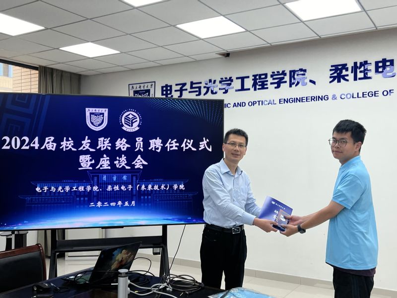 最后,与会老师向校友代表颁发了2024届校友联络员聘书,赠予大家定制的毕业纪念钥匙扣和学院文化衫,希望校友联络员们带着学院老师们的嘱托,肩负责任,勇于担当,在人生道路上书写新的篇章。
